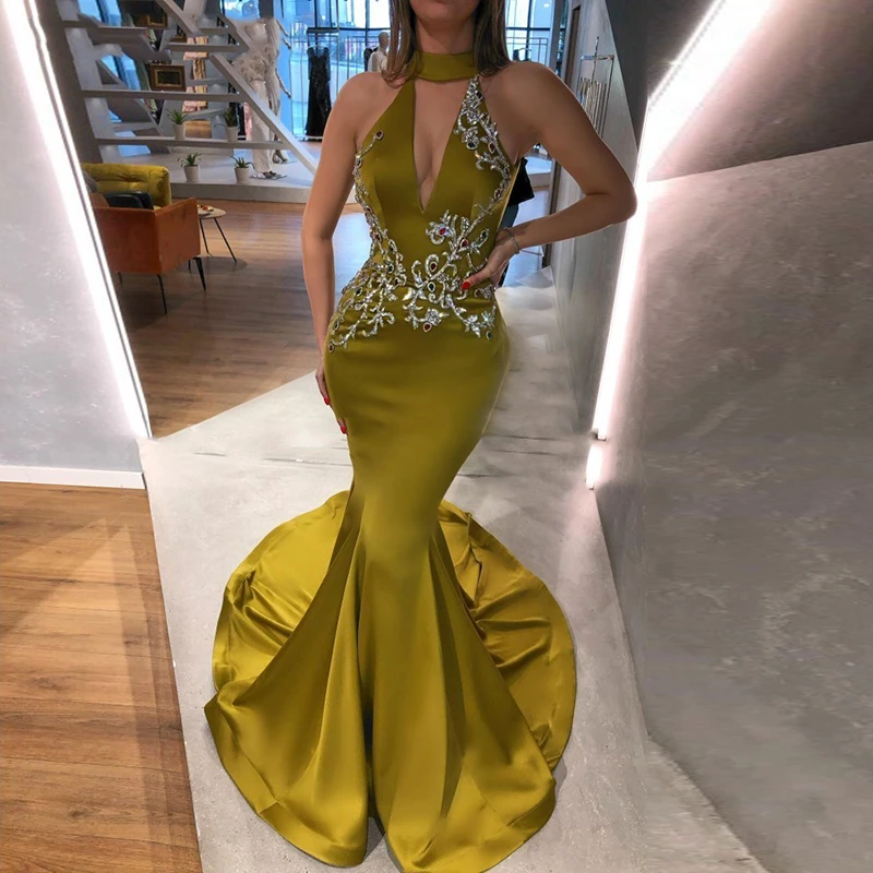 Long Mermaid Evening Dresses 2020 Elegant Women Dubai Crystal Prom Gowns Lime Yellow Plus Size Arabic Formal Graduation Dress Evening Dresses Aliexpress
