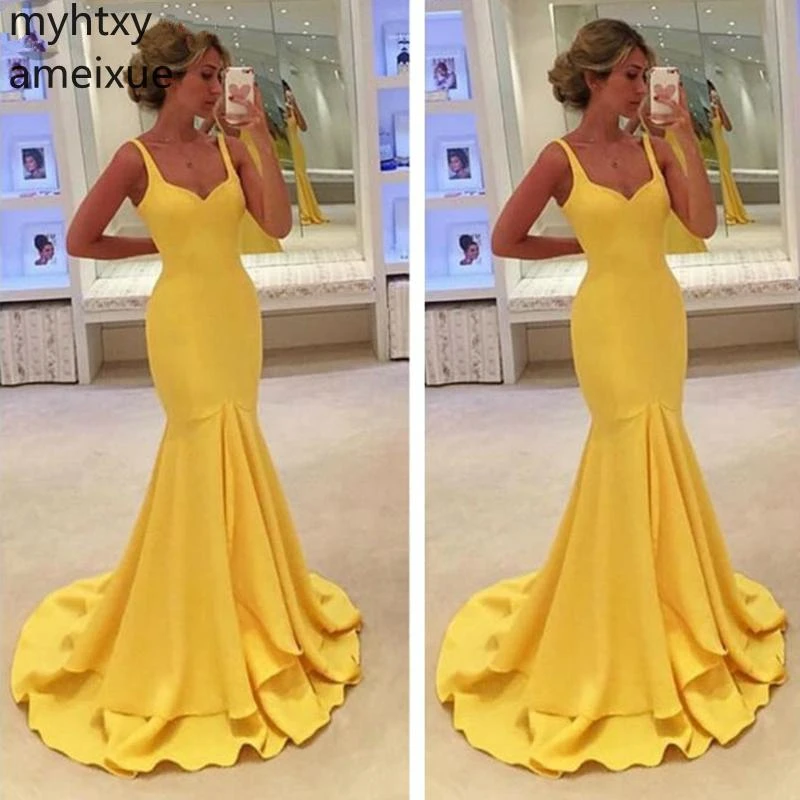 New Arrival Gold Mermaid Yellow Plus Size Evening Dresses 2020 Spaghetti Strap Gown Abendkleider Formal Dress Long Hi Low Dress Evening Dresses Aliexpress