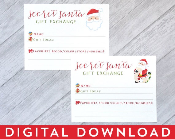 Secret Santa Gift Exchange Printable Pdf Christmas Gift List Etsy