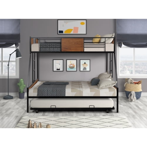 Vik Tech Metal Bunk Bed Twin Over Full Size W Trundle Two Side Ladders Both Capacity 400lbs Black Walmart Com Walmart Com