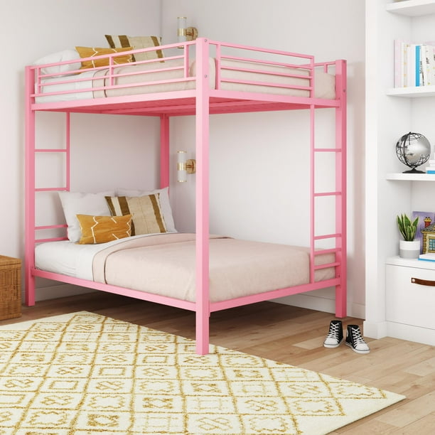 Dhp Full Over Full Bunk Bed For Kids Metal Frame With Ladder Pink Walmart Com Walmart Com